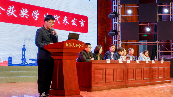 之后,获奖学生代表潘婷婷和黄振业分享了成功的秘诀,荣誉不单单是肯定,更是未来前进的动力。他们代表全体学生向教书育人的老师们表示诚挚的敬意和由衷的感谢,代表团结奋斗的同学们表态,今后会更加努力学习,回报母校,报效国家。