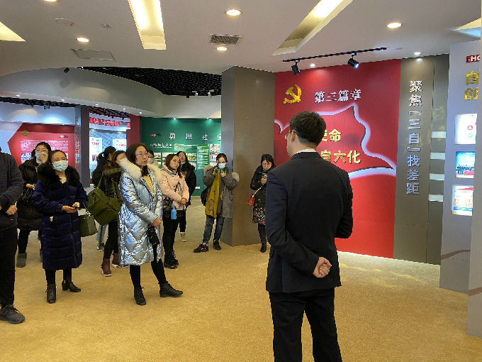 红豆集团党委是全国非公党建的典型,也是唯一一家由中组部发文号召全国企事业单位学习的民营企业党组织。在讲解员的引导下,艺术学院党总支中心组全体成员参观了典雅大气又不乏现代感的红豆集团展史馆,通过一幅幅图片记录的场景,以声、光、电等现代科技手段回顾了红豆集团60年沧桑巨变,红豆人不忘初心,坚守实业,将一个手工小作坊打造成纺织服装、橡胶轮胎、年销500多亿元的大型跨国企业集团的历程。他们秉承着“始终听党话,跟党走”的企业发展之道,以党建为魂引领企业发展,致力把党建深度融入企业管理,把党的政治优势转化为企业发展优势,创造了“一核心三优势”党建经验,“一融合双培养三引领”党建工作法,“五个双向”的党建工作机制。其中红豆弟子规、七夕节等一系列精品文化活动给大家留下了深刻的印象。