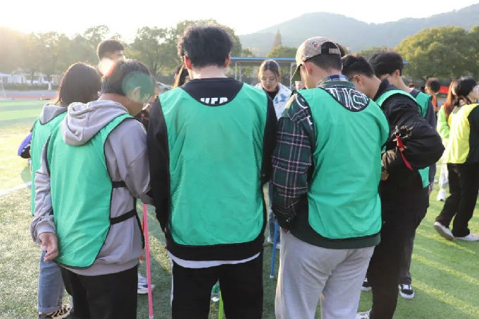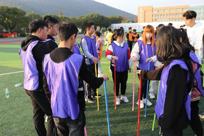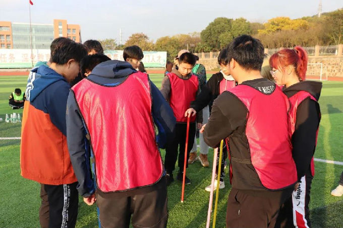 活动第四项:掌心传杆,各部门选出十名部员围成一个圈每个人用掌心稳住一个竖杆然后依次传给旁边的同学,传递过程中竖杆不能倒,这个游戏考验同学们的耐心与细心更加考验部员之间的相互配合,比赛过程中大家有条不紊地传递竖杆,同学们极强的游戏感也是给这个游戏交出了一份几乎满分的答卷。
