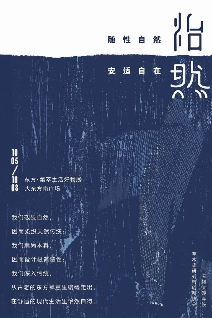 我们将我们的展位名称定为“怡然”。怡然,意在随性自然,安适自在。我们敬畏自然,因而染织天然传统;我们崇尚本真,因而设计极简随性;我们深入传统,从古老的东方禅意里缓缓走出,在舒适的现代生活里怡然自得。