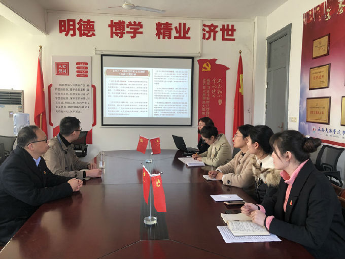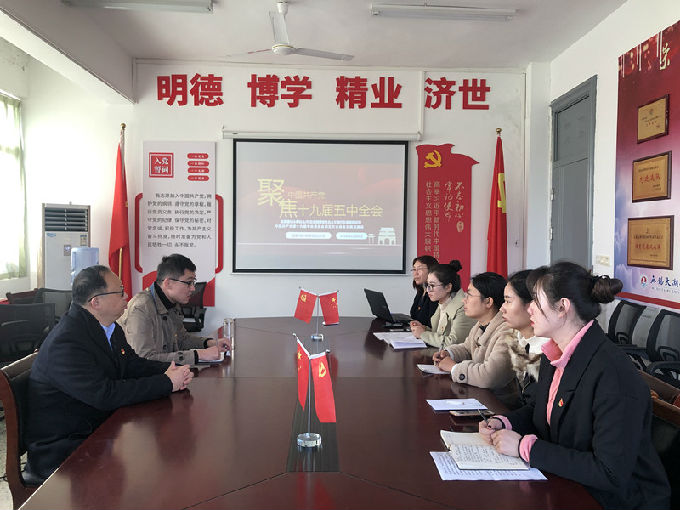12月4日中午,健康与护理学院党总支中心组五号教学楼206会议室召开党总支中心组集中学习会,学习贯彻党的十九届五中全会精神。校党委委员、健康与护理学院副院长周鸣鸣、健康与护理学院党总支副书记胡宇、教工党支部书记詹雪丽、学生党支部书记陈春晓,党总支组织委员于康英和宣传委员和党小组第一小组长闵娟娟,第二小组长梁永春参加了学习会。会议由副书记胡宇主持。会上,先由教工党支部书记詹雪丽带领参会人员深入学习了《中国共产党第十九届中央委员会第五次全体会议概况解读》。