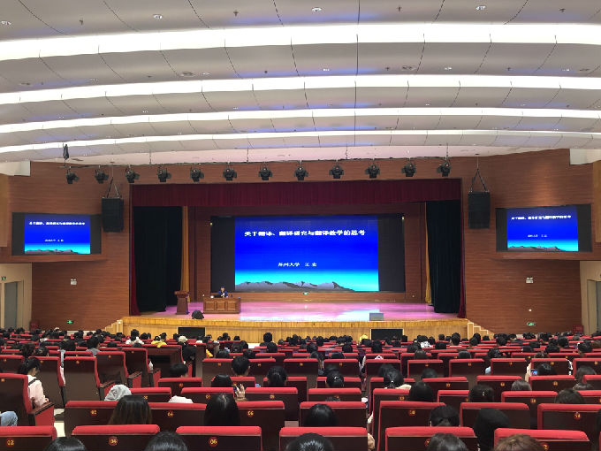 主讲人王宏教授是典籍英译首席专家、翻译学科带头人、博士生导师和博士后合作导师。在讲座中,王教授从自身的翻译学习开始谈起,生动地讲述了他求学时期如何跟翻译结缘,以及从教之后又是如何专注于翻译实践和翻译研究,特别是在调入苏州大学外国语学院翻译系和翻译研究所之后,如何开展苏州地方文化外译、中国典籍英译及翻译理论研究。此外,王教授与师生分享了他对翻译的认识,将这种具有跨文化、跨语言属性的翻译行为细分为严格意义上的翻译和宽泛意义上的翻译,指出严格上的翻译是指原文和译文在内容、形式、意义、长度、体裁、结构、修辞、风格、功能方面高度相似或对等,而宽泛意义上的翻译则以原文为参照,受到赞助者、译文读者需求、译者翻译目的、译入语文化等制约的跨文化交际活动。在谈到翻译研究时,他梳理了当代西方翻译研究的主要观点并展开了对翻译研究的新思考。