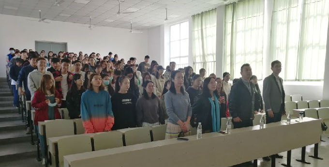 开班仪式由健康与护理学院学生党支部书记陈春晓主持,共分四项议程,第一项议程,全体参会人员起立,奏唱中华人民共和国国歌。