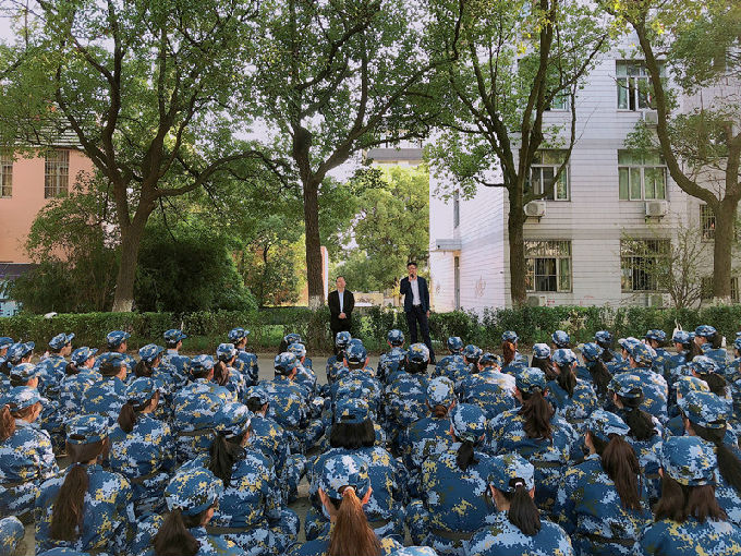 来到军训场地时,新生们正在集体刻苦训练。周鸣鸣院长和胡宇书记首先向参训新生表示亲切问候。随后,胡宇书记发表讲话,他提出三个要点,一是独立,在艰苦的训练中,同学们应学会独立,锻炼自力更生的能力;二是服从命令,在军训中服从命令,令行禁止,同时,更应该把从军训中学习到的精神运用到学习上;三是要有爱心,作为一名护理的学子要时刻具有仁爱之心,学会关爱他人,将疫情中的逆行者作为自身的榜样。