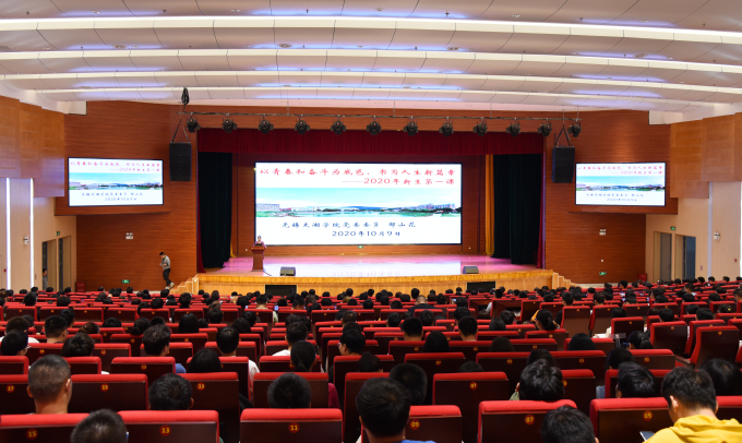 2020年10月9日晚在工科楼一楼报告厅,校党委委员教务处副处长邹山花为智能装备工程学院2020级新生带来题为《以青春和奋斗为底色,书写人生新篇章》的“开学第一课”,学院院长袁惠新、教学副院长杨敏、党总支副书记杨学圣、新生辅导员出席本次大会。