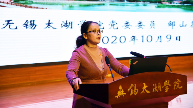 “因为年轻,我们无所不能;因为年轻,我们无所畏惧!”邹山花教授从“疫情同舟,心怀感恩;青春有你,敢于担当;青春绽放,梦想起航”三个主题与同学们共同学思政、聊太湖、谈感悟、提建议。邹教授展示了中国力量、中国精神、中国效率,展现大国形象,并分享了太湖学子积极投身在抗疫第一线的故事,要求学生践行“大学四步走:做好规划、养好习惯、树立自行、超越自我”。她寄语同学们:“一个人追求的目标越高,他前进的力量也就越大;心态决定状态,好心态会带来生活学习的好状态;行动是通往目标的桥梁。同学们要尽快融入学校,适应大学生活和学习的氛围,学以致用,知行合一, 学到真知识、练就真本领,涵养仁爱心、胸怀家国情、永攀人生巅峰!”