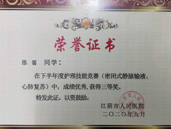再次祝贺beat365官网实习生护理1703班张笛喜获佳绩,希望同学们以她为榜样,再接再厉,争取更多优异成绩!(护理1703 张笛)