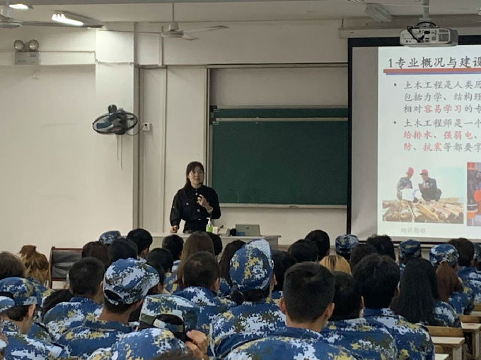 贺方倩老师首先对2019级新生的到来表示了热烈的欢迎。随后贺老师就向大家介绍了土建行业的现状、土木工程专业需要学些什么、怎样学好自己的专业课、实习实践实训有哪些以及未来的就业等新生需要知道和了解的内容。