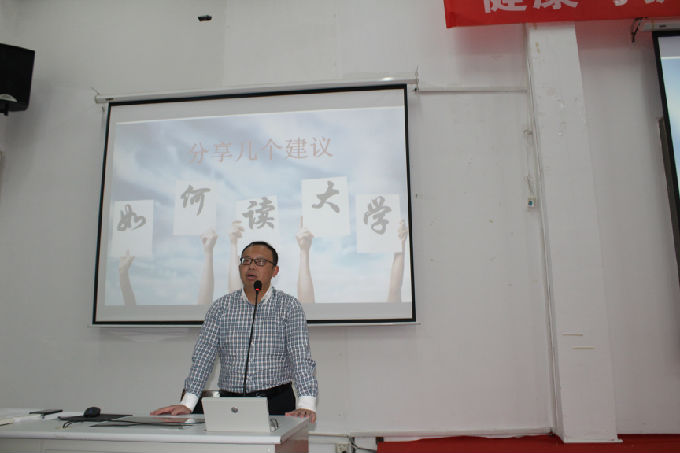 紧接着教师代表宋绍征发言,宋邵征老师为同学们介绍了护理学院的基本情况,开设课程、实验实训教室和护士的就业前景和方向,激励新生明确职业目标和人生目标,志存高远,健康生活。