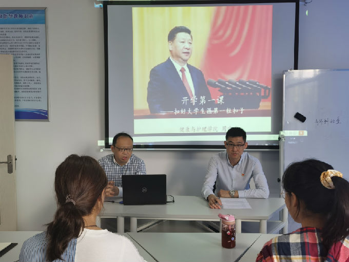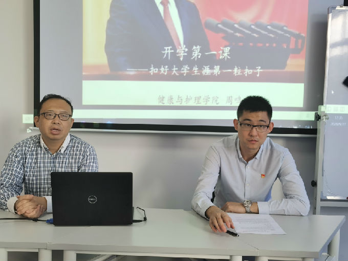 为深入贯彻学校党委决定在2020级新生中开展学校党政领导干部讲授“开学第一课”主题教育活动的要求,健康与护理学院副院长周鸣鸣、党总支副书记胡宇于9月27日中午12:30为健康与护理学院全体2020级新生讲授“开学第一课”。
