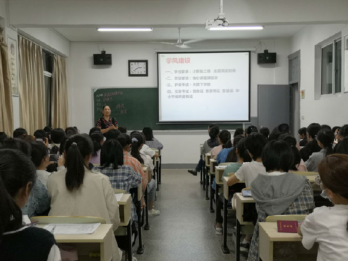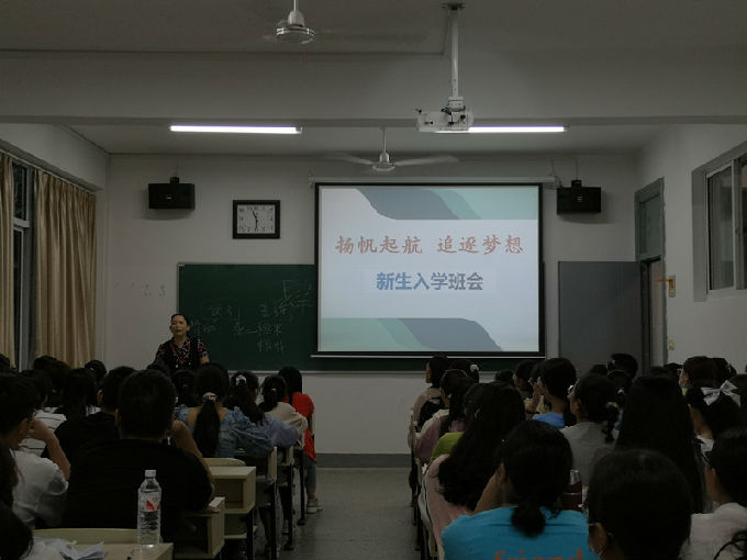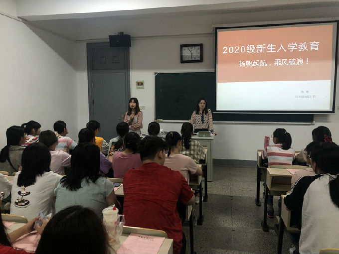 秋风送爽,丹桂飘香,9月21日晚上,健康与护理学院在5号教学楼举行了2020级新生入学教育班会,辅导员马莉、詹雪丽老师和各班班主任及全体新生参加了本次会议。