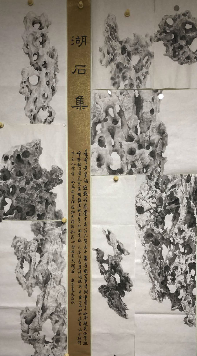 贾建磊 国画《湖石集》 作品尺寸:90cmX4500px 创作时间:2020年