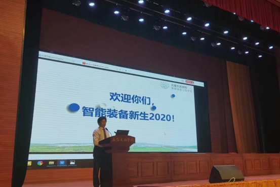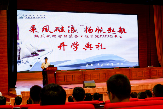 杨学圣书记首先向2020级新生表达热烈欢迎并致辞,崭新亮相的智能装备工程学院迎来了五湖四海,追逐梦想的级新同学,学院贯彻学校“本科水平 一专多能”的教育目标,创新实施双因施教分类培养,正在脚踏实地向更高水平发展。求真务实、拥有远见的领导队伍开疆引路,专业扎实、科学严谨的教学队伍哺育成才,认真负责、富有爱心的学工队伍保驾护航,学院全体师生必将助力各位新生实现梦想!