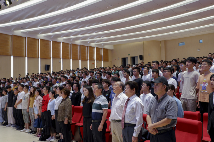 典礼开始全体参会师生起立,奏唱中华人民共和国国歌。