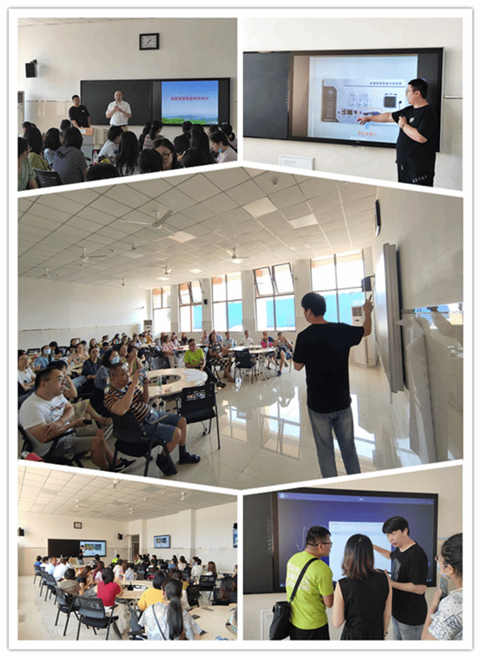 老师们对智慧教室和智慧互联黑板产生了浓烈兴趣,争先进行操作实践,并积极询问。参会老师们认为智慧互联黑板能极大调动学生课堂学习的积极性,帮助老师们更加方便高效地开展教学。大家也表示今后会使用好设备,切实服务好学生,提高教学质量。