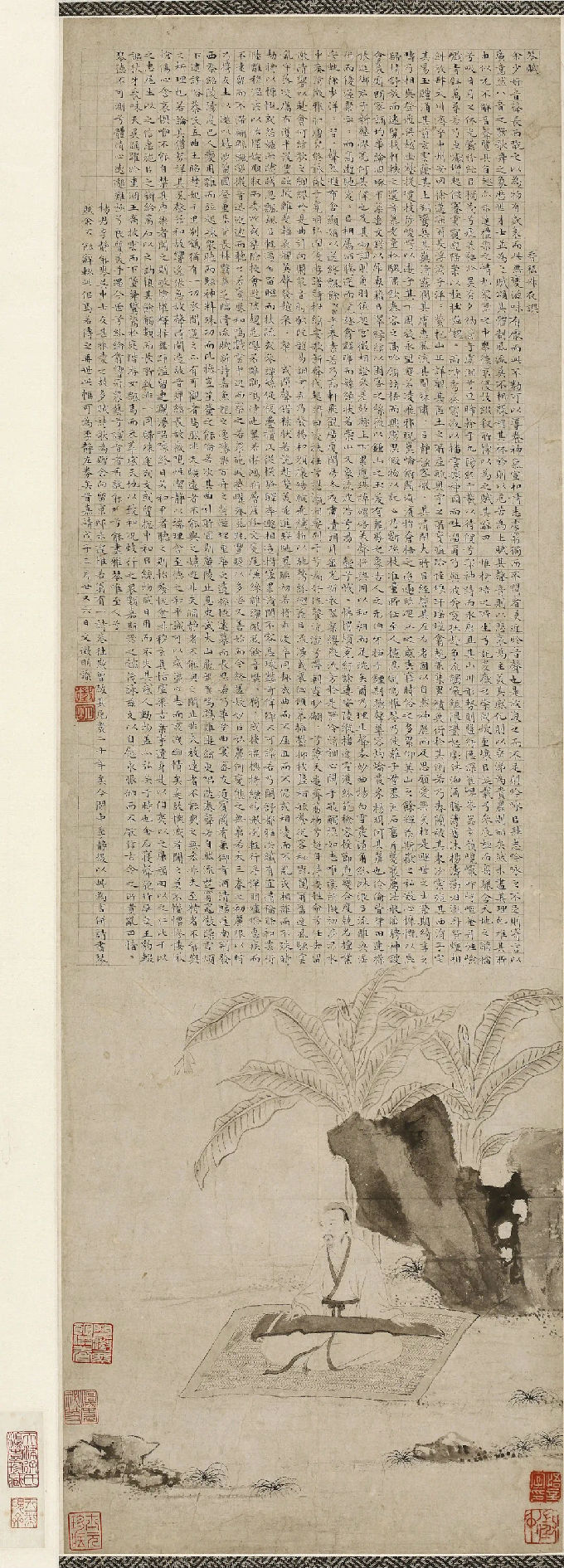 韩晶创作的《文徵明< 蕉石鸣琴图轴>油画新构》布面油画,作品尺寸:130x70cm