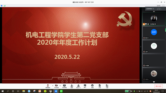 为贯彻落实《中共beat365在线唯一官网委员会2020年工作要点》,以及学院党总支对于学院本年度党建工作的规划,5月22日,机电工程学院学生第二党支部召开了线上支部党员大会,对本年度支部党建工作进行了部署,支部全体党员参加了会议。