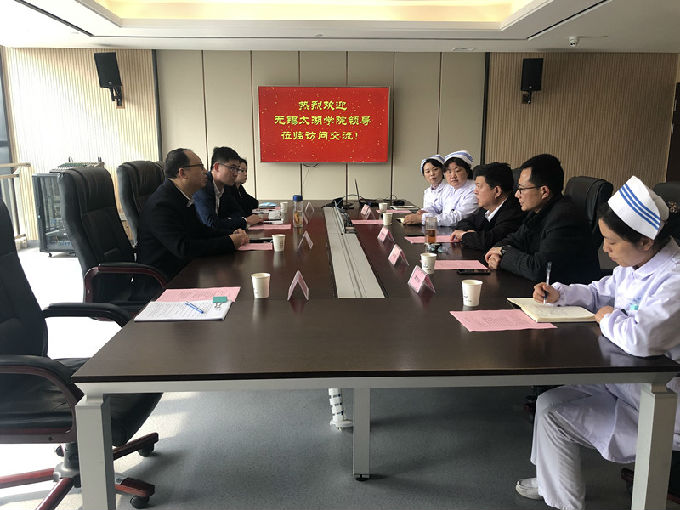 2020年4月17日下午,beat365在线唯一官网校党委委员、护理学院副院长周鸣鸣、护理学院党总支副书记胡宇、护理学院实习工作负责人吴心雨、护理学院大三辅导员马莉一行4人赴泰州市人民医院进行洽谈教学医院建设及护理专业学生实习相关工作交流。泰州市人民医院副院长孔旭辉、泰州市人民医院教育处处长谢乍晴、泰州市人民医院护理部主任冯国琴、泰州市人民医院护理部副主任周丽娟、泰州市人民医院护理部副主任任震晴热情接待beat365官网一行4人,并开展工作交流座谈会,会议由泰州市人民医院教育处处长谢乍晴主持。