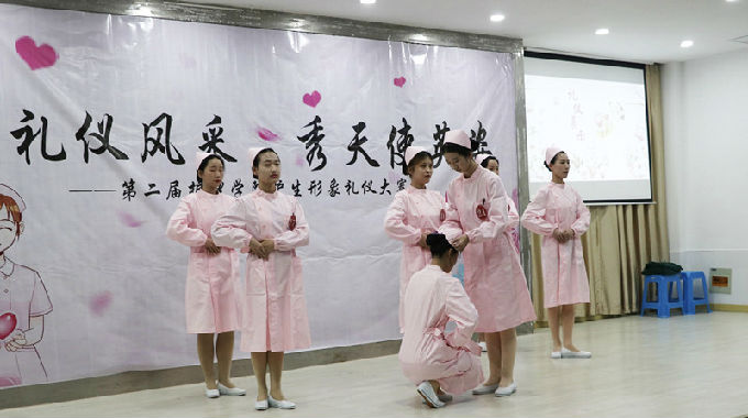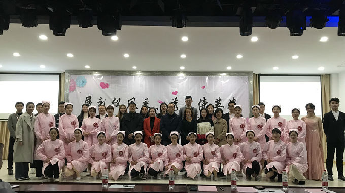 本网讯 为弘扬南丁格尔精神,传承并发扬中华民族文明礼仪传统,同时也为了让更多学生了解护理礼仪文化,强化学生的护理礼仪修养,丰富课余生活。护理学院于2019年12月4日在大学生活动中心B开展了第二届护生形象礼仪大赛。本次大赛的特邀嘉宾有护理学院院长王心如、护理学院副院长周鸣鸣、护理学院党总支副书记胡宇。