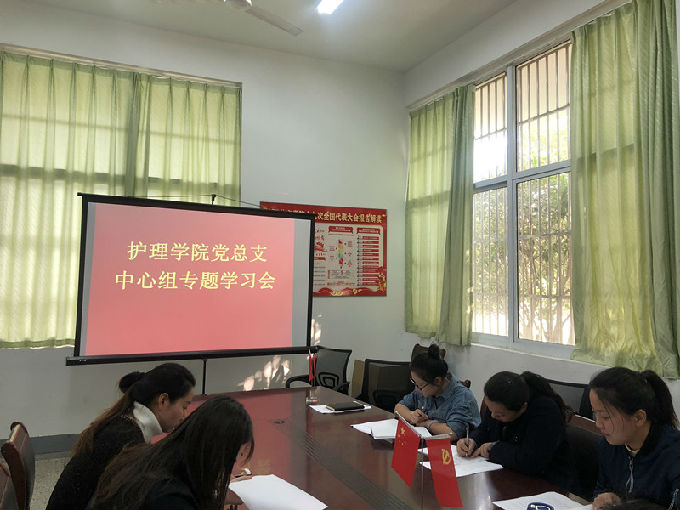 11月22日下午2点,护理学院党总支在5号楼106会议室开展了本月的中心组学习,护理学院总支副书记胡宇主持本次会议,beat365在线唯一官网党委委员护理学院副院长周鸣鸣列席,各支部书记及委员参与学习。小组成员相互交流,总结经验。