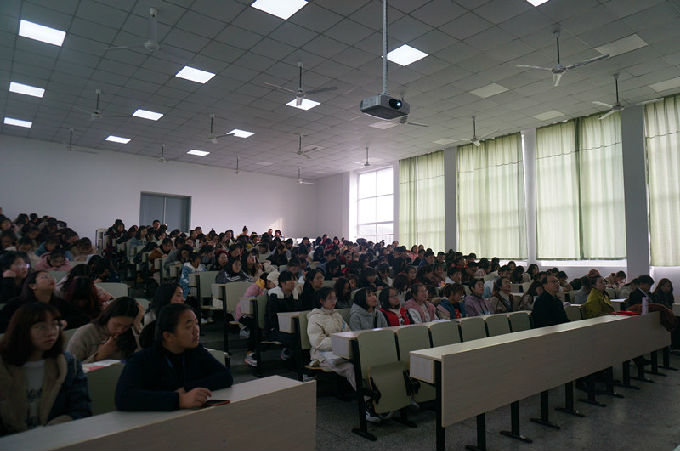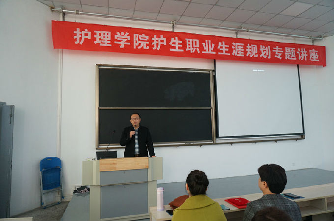 本网讯 为进一步加深护理专业学生对专业及就业前景的认识,帮助学生科学规划护士职业生涯,11月28日下午,由护理学院主办、护理学院学工助理团承办的护生职业生涯规划专题讲座在五号楼318隆重举行,本次讲座有幸邀请到无锡市第九人民医院护理部主任——傅育红主讲,护理学院副院长周鸣鸣、护理学院党总支副书记胡宇以及校企合作单位无锡国际经济技术合作有限公司苗锡强出席本次讲座,护理学院大一大二学生参加此次讲座。
