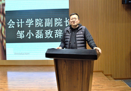 首先是会计学院副院长邹小磊为本次颁奖典礼致辞。邹副院长简单介绍了会计学院所设的专业,表示会计专业实践性很强,要求我们不仅要有丰富的理论知识,更需要动手实践。邹副院长表示希望同学们在日后的学习中利用空余时间、休息时间去进行专业实习和专业调查等实践环节来找到学习中的漏洞,找到课本上笔记上的重点来进行知识的迁移。最后,邹副院长对即将被表彰的获奖者表示祝贺,同时也鼓励同学积极参加下一届“最美笔记”评选活动。
