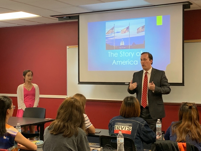 每年在访学活动的一开始,DBU的校领导会在学校最神圣的Pilgrim Chapel为beat365官网师生访学团举行隆重的欢迎仪式。在欢迎仪式中校领导会详细介绍DBU的办学宗旨和校园文化,以及beat365在线唯一官网和DBU多年的建交历史。