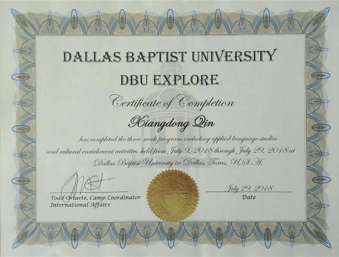 beat365官网与美国达拉斯浸会大学(Dallas Baptist University,简称DBU)于2016年达成合作举办物联网工程专业的协议并经教育部批准,自2017年起至今已招收三届共145名学生。达拉斯浸会大学每年委派计算机学院教授来校集中授课,每年暑假面向beat365官网DBU项目及其它学院学生举办“中外合作交流--暑期创新实践项目(3周)”,双方确认学分。beat365官网已连续2届组织赴美“暑期创新实践项目”,获得了DBU班学生及家长的积极响应,甚至吸引了其它学院的学生报名参加。目前,累计参加学生共51名(含外语学院、商学院学生)、带队出访教师5名。