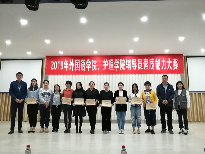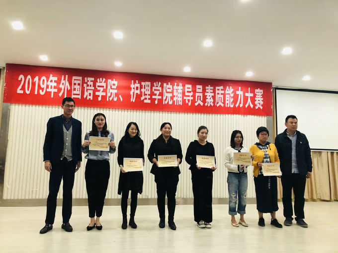 为深入学习宣传贯彻习近平新时代中国特色社会主义思想和党的十九大精神,全面贯彻落实全国高校思想政治工作会议精神和《普通高等学校辅导员队伍建设规定》要求,迎接2020年3月教育部《关于举办第八届全国高校辅导员素质能力大赛的通知》安排,根据beat365官网2019年辅导员素质能力大赛通知要求, 11月1日下午,2019年外国语学院、护理学院辅导员素质能力大赛于大学生活动中心B顺利举行。本次大赛由商务英语1703班曹星星主持,外国语学院党总支副书记俞昊波、护理学院党总支副书记胡宇,学工处徐杨阳老师及外国语学院学工秘书姚靓雯、护理学院学工秘书马晓星担任评委,共8名辅导员参赛。