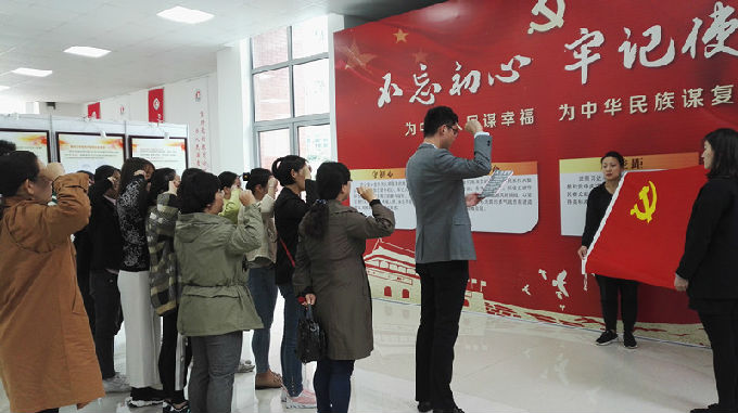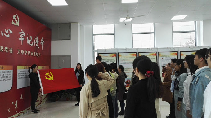 参观最后,护理学院党总支全体党员面朝党旗,由胡书记带头进行宣誓,短短一百多字的誓词是他们入党后对党的第一个承诺。