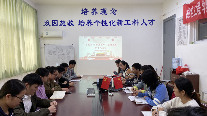 为纪念中国共产党成立98周年,深入贯彻学习习近平新时代中国特色社会主义思想,贯彻落实“不忘初心、牢记使命”主题教育的重要精神,机电工程学院学生党支部于10月25日下午在学院会议室召开了“不忘初心、牢记使命”主题教育学习交流会,机电工程学院学生党支部全体党员与预备党员参会。