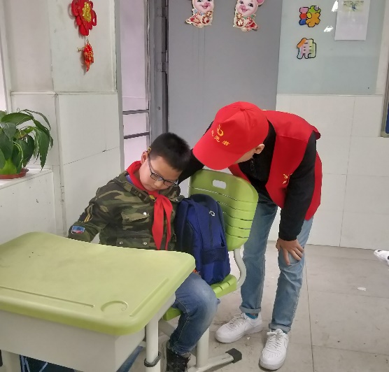 本次志愿服务有条不紊地进行,党员们各司其职。在放学高峰时段,协助育红小学工作人员维护放学秩序,并在育红小学门口的丁字路口站岗维护接送车辆的停放疏导,引导车流与人流间隔通行,最大限度的利用道路通行资源,对校园周边车辆乱停乱放进行及时劝导和摆放,主动帮助一些行李多、行李重的同学提行李,提醒同学们不要在车行道内嬉闹和逗留,不要随意横穿马路,不闯红灯,自觉遵守道路交通法规,做到安全文明。在党员们的辛勤努力下,育红小学护学工作圆满完成。随后,党员们进入育红小学的教室里帮忙摆放桌椅,陪伴还未被接走的同学。