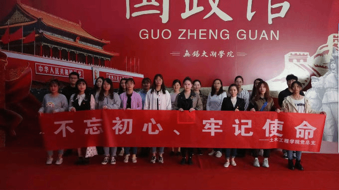 随后,全体党员来到学校国政馆进行参观学习。在国政馆前,余书记带领全体党员面向党旗,庄严宣誓,对党忠诚,为共产主义奋斗终生。接下来,在马克思主义学院孙艳艳老师的生动讲解下,大家对党史、新中国史有了更加直观的认识,对新中国70年的发展变化有了更深刻的体会,进一步增强了“四个意识”、坚定了“四个自信”、自觉做到“两个维护”。