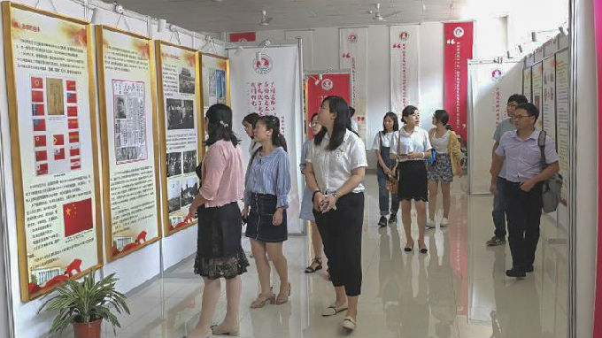 会后,党支部成员来到学校“国政馆”进行参观,认真学习了党史和新中国史。