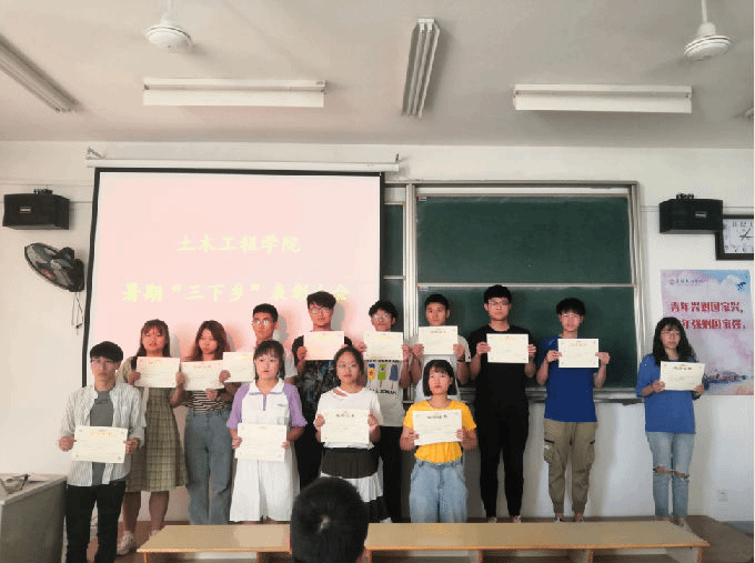 通过此次暑期“三下乡”社会实践活动表彰大会让同学们进一步认识到暑期“三下乡”社会实践活动的意义,有利于培养同学们服务社会的意识,提升自身的综合素质。作为新时代青年大学生,要 “不忘初心、牢记使命”,努力践行社会主义核心价值观,在实践中提升自身能力,增强责任心,为实现中华民族伟大复兴做出自己的贡献。