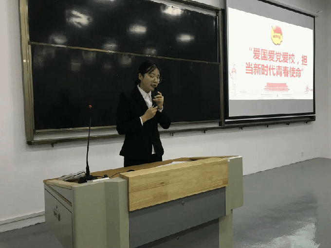 活动开始,护理学院团总支副书记作为代表对新生发表了“爱国、爱党、爱校,担当起新时代青春使命”的主题演讲。从三方面传递了爱国思想,增强新生爱国的情感和振兴祖国的责任感,呼吁新生有本领、有担当,坚定理想信念,树立远大的抱负和理想,真正把爱国之志变成报国之行。