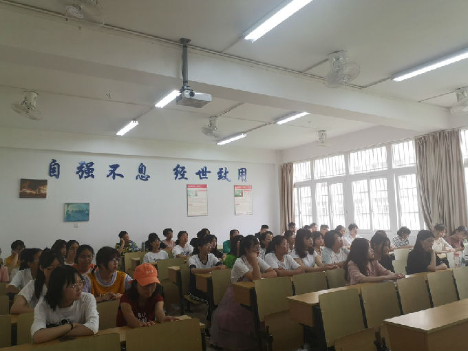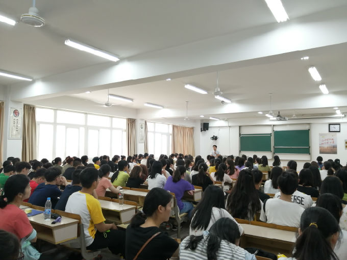 首先,许主任用日语做了简短的自我介绍。接着,她为大家讲述了学习日语的过程中可能会遇到的一些问题,以及日语系的师资力量。最后,她告诉同学们:“各种外来的资源都不及自己的努力,一定要对专业相关的书籍舍得投入。”