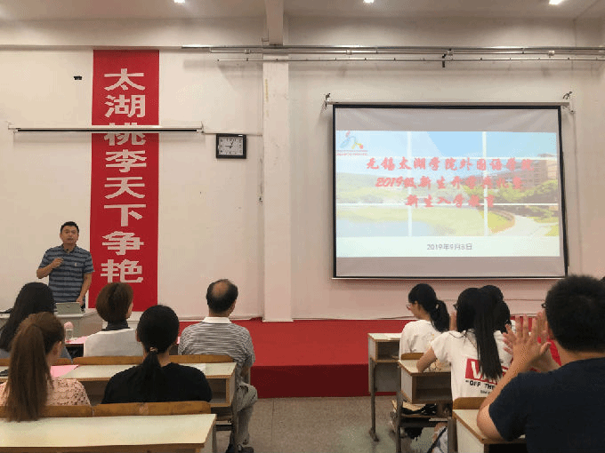 9月9日下午,外国语学院党总支副书记俞昊波就beat365官网历史、办学特色、专业前景等对2019级全体新生开展入学教育。