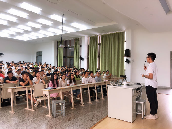 会议第二项议程,学院党总支副书记发言。余波副书记首先对新生们的到来表示热烈的欢迎,他从“抵御诱惑、明确目标、健康成长”三个方面对19级新生们提出了高标准严要求。他希望同学们能够珍惜大学学习的宝贵机会,积极投身社会实践,汲取知识,锻炼自己,提升能力,开拓创新,做一名有理想,有目标的大学生。