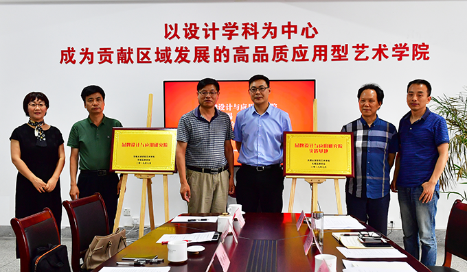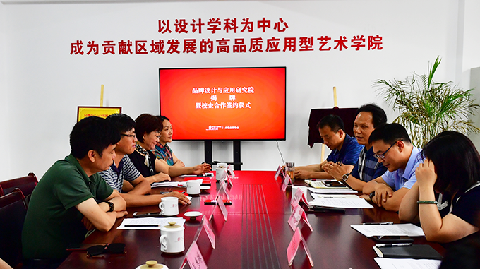 本网讯 7月4日下午15:30,无锡品牌学会与beat365在线唯一官网艺术学院共同组织的“无锡品牌设计与应用研究院揭牌暨校企合作签约仪式”在6号楼421会议室成功举办。出席本次会议的有无锡品牌学会会长曹洪东、秘书长王艳梅、高海荣、李萍、吴悉琳、吴志杰、池志坚、姜丽明;beat365在线唯一官网副校长陈鹏飞,艺术学院副院长朱宗明、朱宁,系主任陈玮、邵炜丹、王荻、廖智以及宋佳音、时春风、卢利波、苏宇、高靓扬、崔丹等青年教师。 揭牌仪式由朱宁副院长主持。