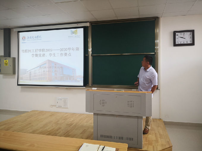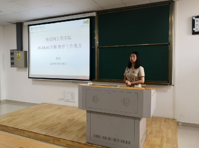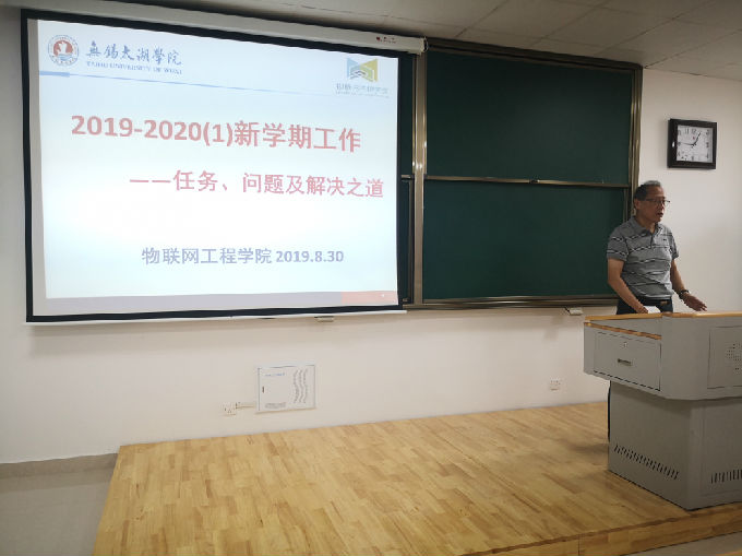 8月30日上午9点,物联网工程学院全体教职工在工科大楼A403召开了2019-2020学年第一学期全院教职工大会,学院院长惠晶,副院长方宁生,副院长李莎,党总支副书记沈峰,物联网工程学院全体教职工参加此次会议。