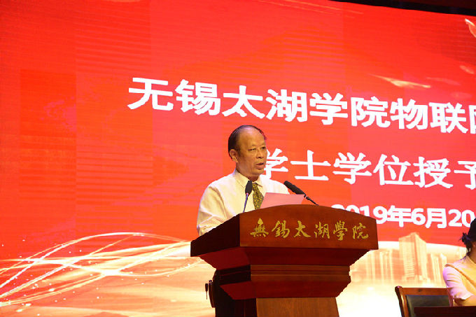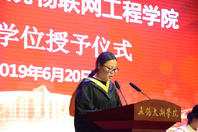 大会第二项议程,物联网工程学院院长惠晶发表致辞。惠晶院长指出物联网工程学院近几年历经变革,由前身学校工学院一分为三单独设立为现在的物联网工程学院,分设初期,经历了一段困难的时期并解决了许多难题。2019届本科毕业生作为学院分设以来较早批次的毕业生,与物联网全体教职工一起,共同努力,学院才会有现在的收获和成就,才有底气走向未来,继续开创学院新的历史篇章。惠晶院长饱含深情地赠送给全体毕业生三句箴言:“不要忘记终生学习”、“不要忘了千里之行,始于足下的千古古训”、“珍惜自己的身体”。最后惠晶院长再次对院全体毕业生致以毕业的祝福和对全体毕业生的关心。