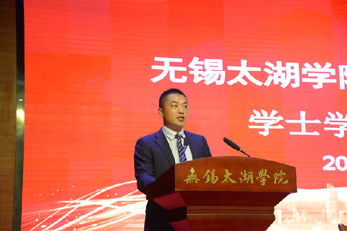 大会第三项议程,由物联网工程学院党总支副书记沈峰书记代表学院表彰考研录取学生和优秀毕业生,全体学位评定分委员会委员向考取研究生学生和优秀毕业生赠礼。