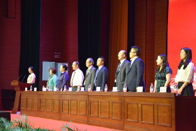 大会第一项议程,全体起立,奏唱国歌。