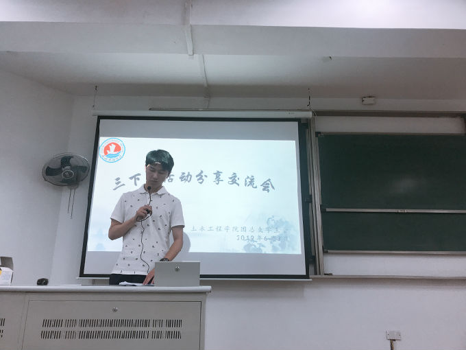为了让同学们全面地了解暑期“三下乡”社会实践的具体内容和开展流程,土木工程学院团总支学生会于6月3日晚在7号教学楼118教室举办了2019年暑期“三下乡”社会实践分享动员会。本次活动邀请了鲍晨皓、张浩、冯健、黄行健四位同学给学院各年级学生代表做“三下乡”活动的相关活动事项说明,本次活动由土木工程学院团总支学生会文体部部长薛思滢主持。