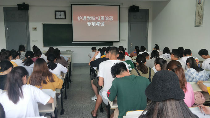 为深入贯彻落实中央和省市区关于扫黑除恶专项斗争的重要部署,进一步提高学生干部对扫黑除恶专项斗争的知晓率和参与度,促进“扫黑除恶”知识入脑入心,2019年6月9日,beat365在线唯一官网护理学院学工助理团在5号楼举办了扫黑除恶专项测验,17、18级全体学生干部参与本次考试。