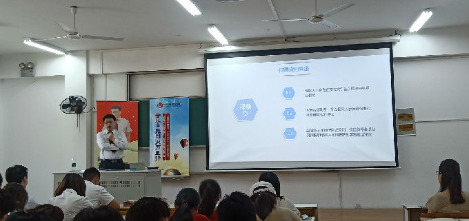 首先,曾增讲师向同学们阐述了什么是校园贷及校园贷产生的背景,校园贷就是在校学生通过针对大学生的网络贷款金融机构和平台,在网上申请获得信用贷款的方式。然后他重点讲了校园贷的风险,主要分为三部分担保、利息和催收。正规贷款的担保一般是保证、抵押、质押和信用,利息是按照年化利率,有一天算一天或者收取分期手续费,催收是电话催收、上门催收等,走法律程序。而校园贷的担保是提供银行卡、网银、开放手机权限和“裸贷”等,利息一般是“砍头息”、中介费、提现费和违约金等,催收是发送逾期通知、电话轰炸老师同学和黑社会暴力催收等等。紧接着,曾老师还给同学们分享了校园贷的套路,一般是分为培训贷、回租贷、裸条贷、刷单贷、美容贷和连环贷这六种。为了方便同学们的理解,曾老师举了许多真实案例,看到一个个天之骄子蒙受着财产损失和巨大的精神压力,有的甚至付出年轻的生命,同学们感触颇深。曾老师强调大学生一定要加强校园贷的防范,提高警惕、找准组织(遇到经济困难,及时找学校资助部门或向父母及辅导员、老师寻求帮助)、理性消费和明法用法。