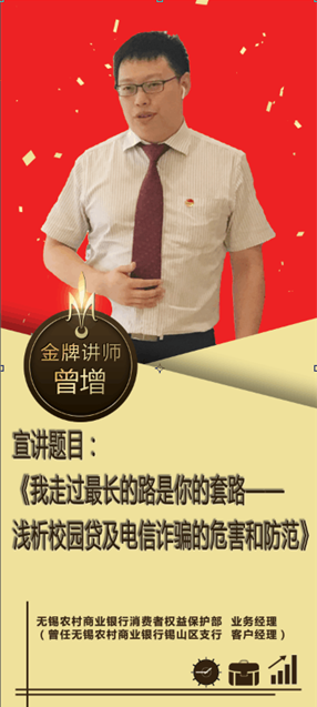 互联网的快速发展和普及,给人们生活带来极大的便利的同时,也带来许多问题。对于高校大学生,最典型的就是校园贷和电信诈骗等恶性事件,许多学生因为缺乏对相关知识及法律的了解,被不法分子钻了空子,有的甚至被骗得倾家荡产,严重影响了学生的学业和身心健康。为了让同学们深刻认识到防范电信诈骗和校园贷的重要性,加强大学生识别电信诈骗、网络诈骗知识,打击黑恶势力,防止学生人生财产安全受到侵害,在全面开展“扫黑除恶”活动之际,土木工程学院于2019年5月22日下午在7号楼118开展第九期《企业大讲堂》,此次大讲堂特邀无锡农村商业银行消费者权益保护部业务经理曾增讲师为学院大一大二年级全体同学讲述校园贷和电信诈骗相关知识,帮助同学们树立正确的价值观和消费观。