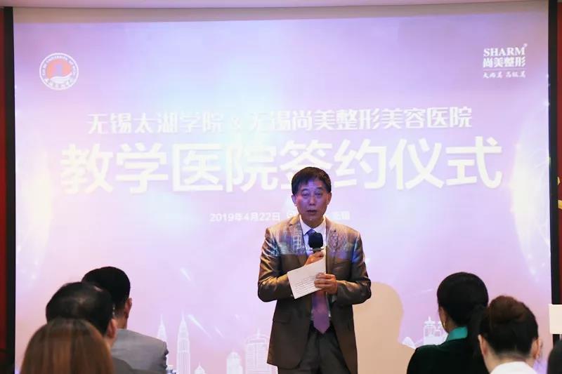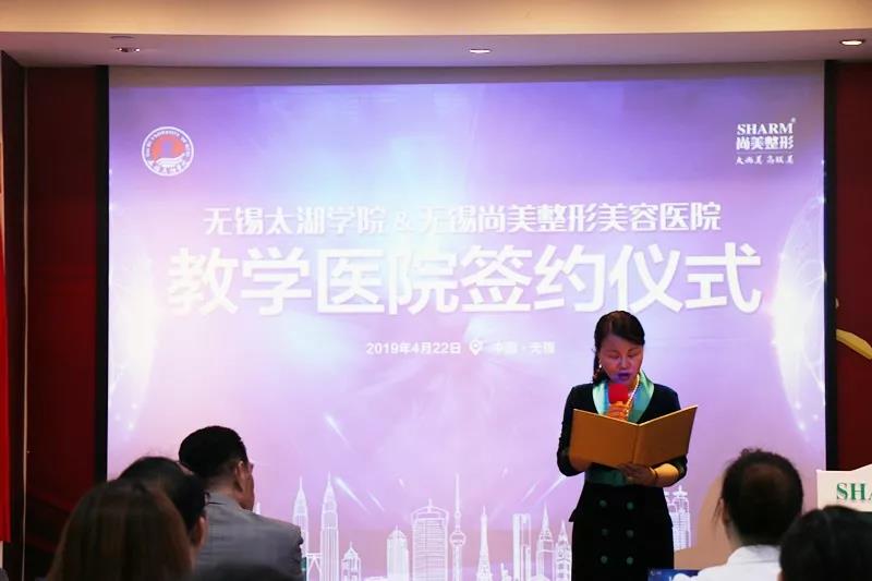 beat365在线唯一官网&无锡大尚美医美集团——beat365在线唯一官网教学医院签约仪式现场,无锡大尚美医美集团总经理黄琪女士上台致辞。