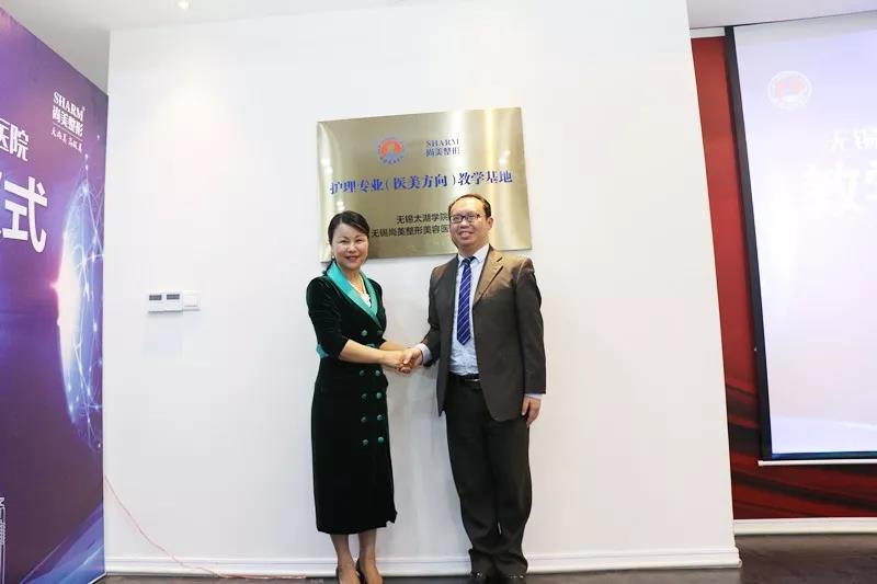 随后无锡大尚美医美集团总经理黄琪、beat365在线唯一官网护理学院副院长周鸣鸣正式为无锡尚美整形教学医院揭牌。